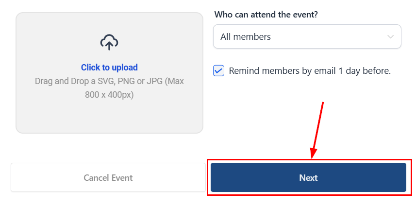 11. Upload Image: Add an image to enhance the event listing.