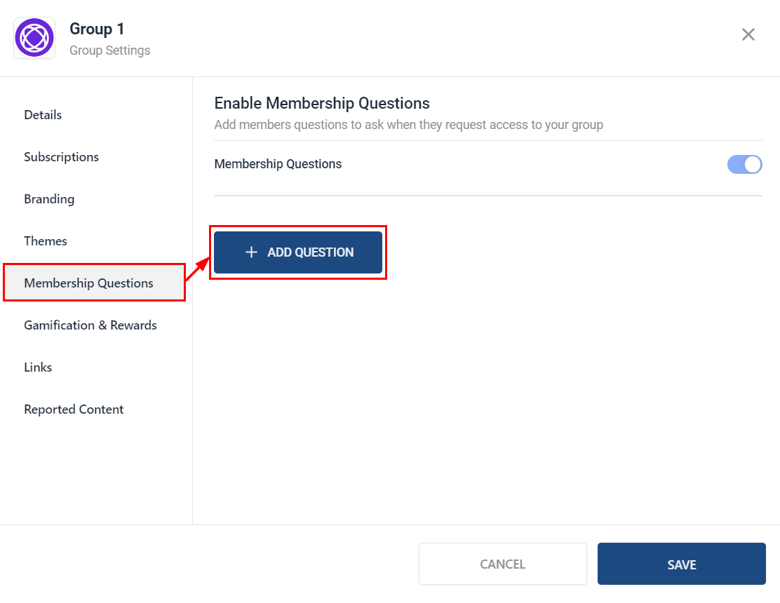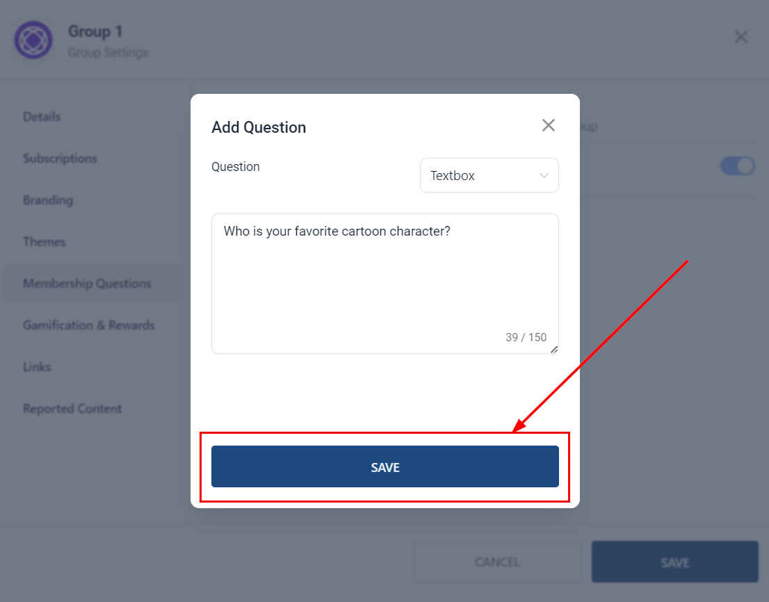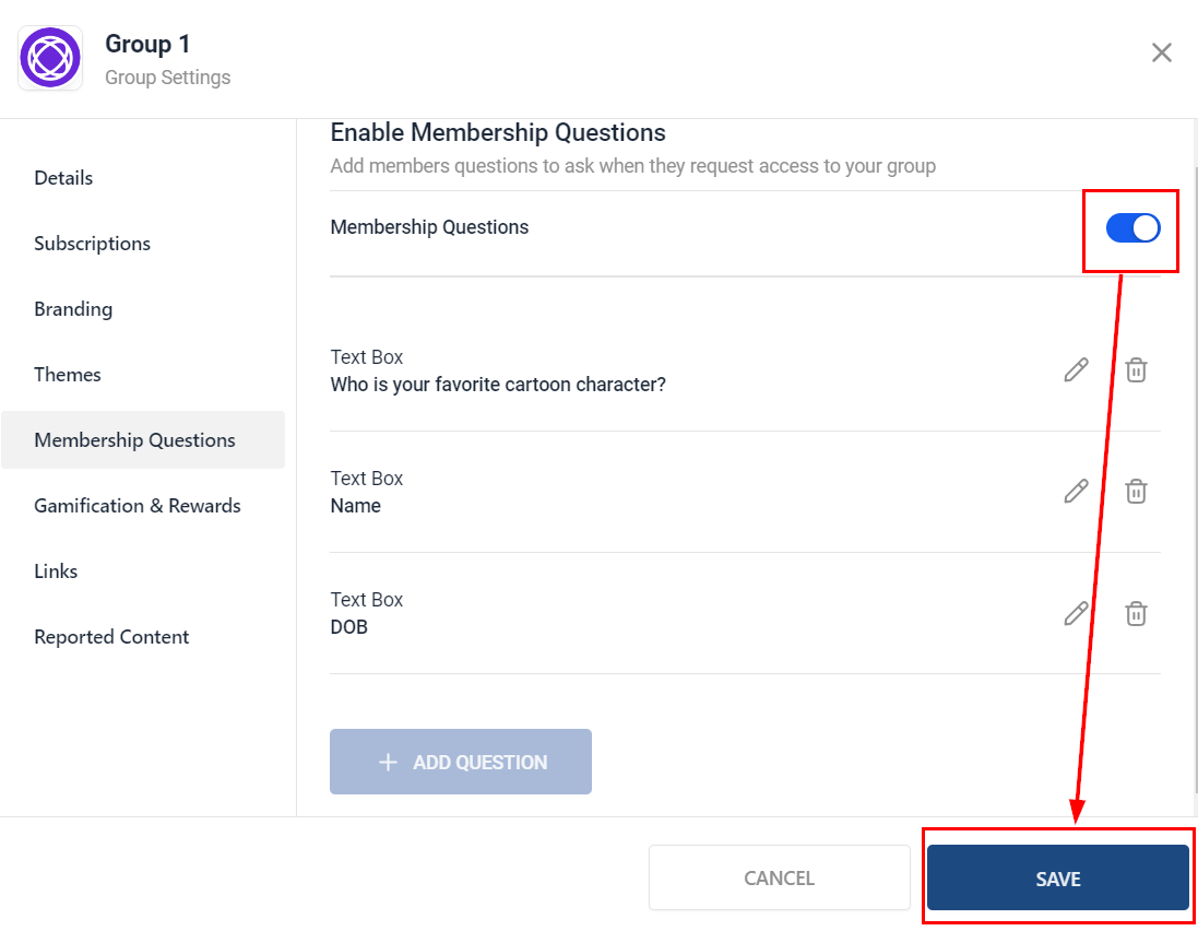 Once the Membership Approval Questions feature is enabled, members requesting to join the group will receive the questions you set up. Don't forget to save your changes!