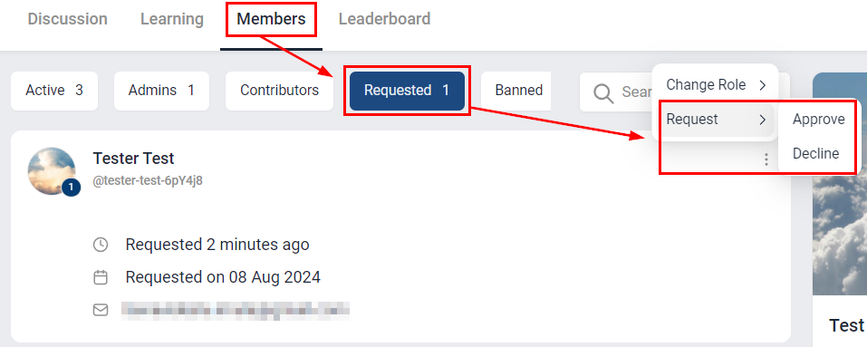 Review and Approve Requests: Admins and owners can review and accept or reject requests from the "Members" section under the “Request” tab.