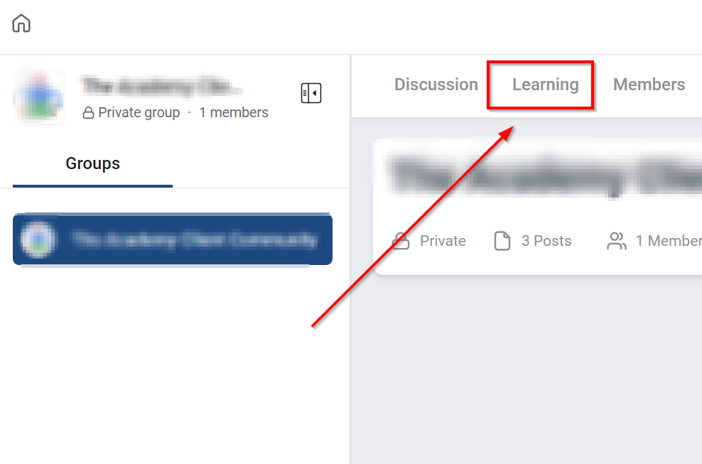 Accessing Learning Materials: Click on the "learning" tab to view or add courses relevant to your community.