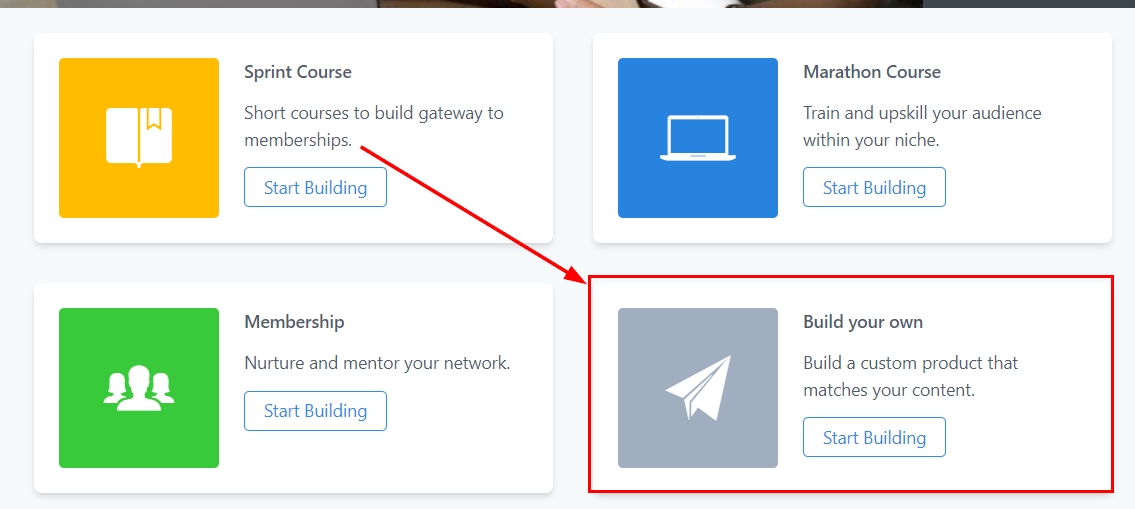 In the "Build Your Own" column, click on “Start Building” to begin creating a custom product that matches your content.