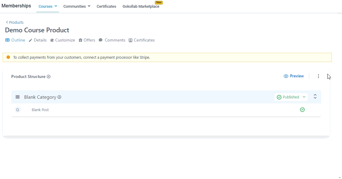 Once you have connected an offer to the course from the Membership > Offers section, you will be able to view and edit the checkout page.