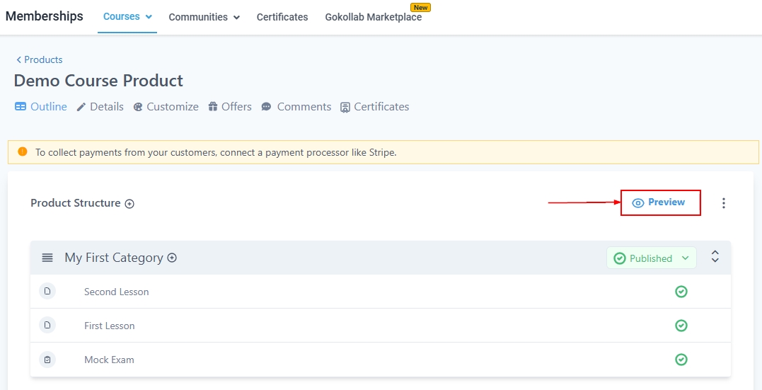 Check Visibility Setting: If a lesson does not appear in the preview of your course, ensure it’s set to “Published.”