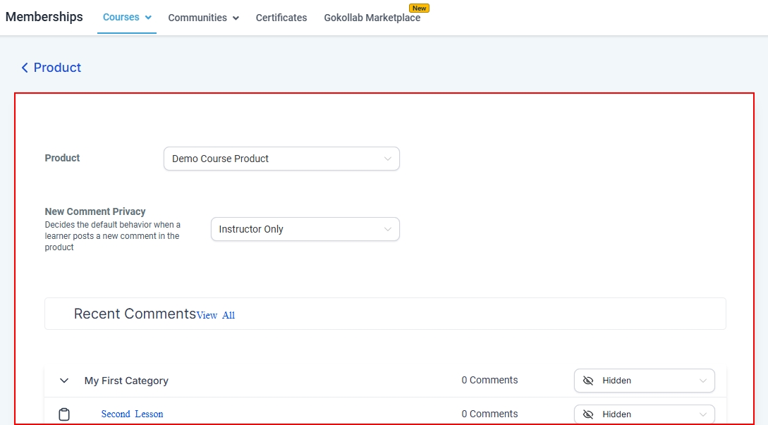 Locked: For products with multiple categories, use the Locked mode to require visitors to complete previous categories before accessing subsequent ones. Click the "Locked" icon and select the prerequisite post that must be marked as complete to unlock the next category.
