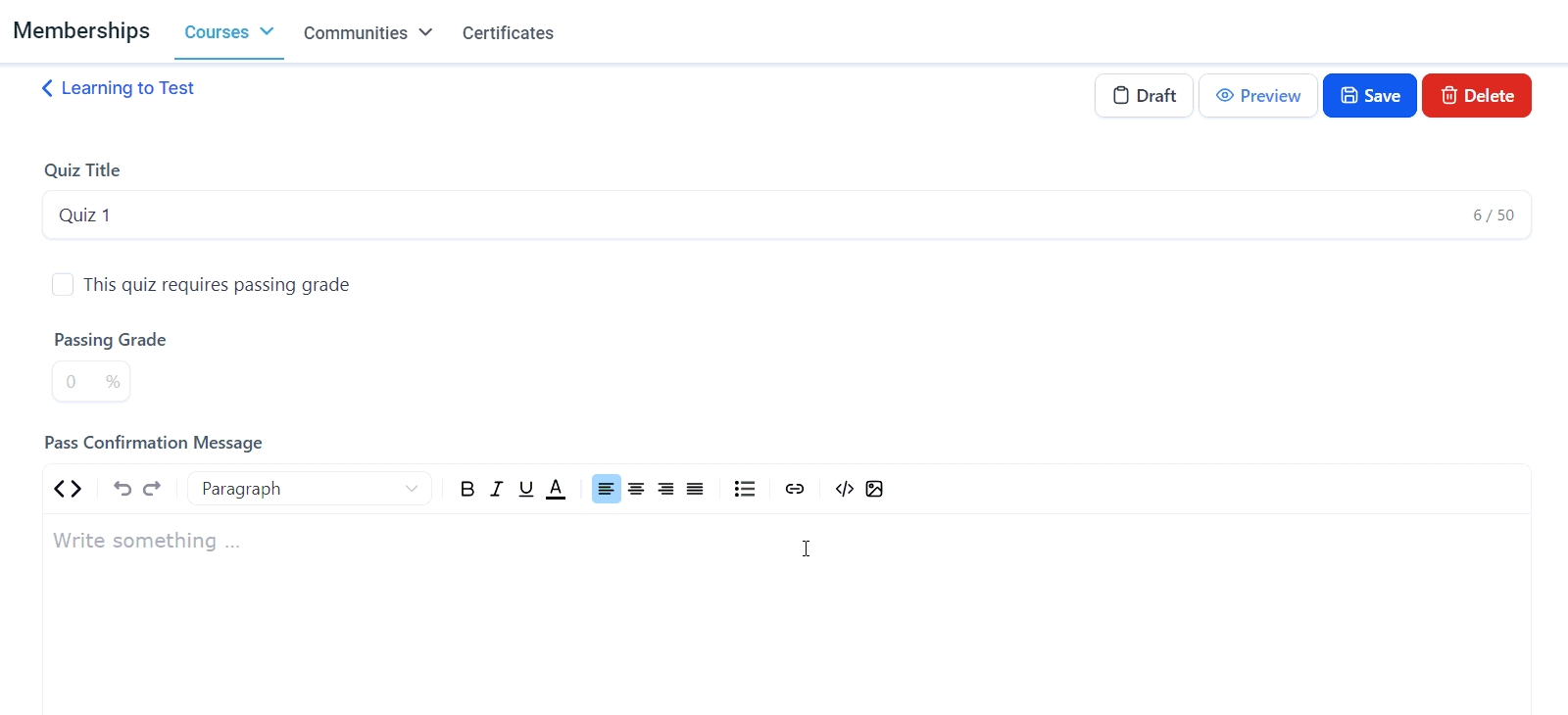 Decide if the quiz requires a passing score. If so, specify the percentage needed to pass.
