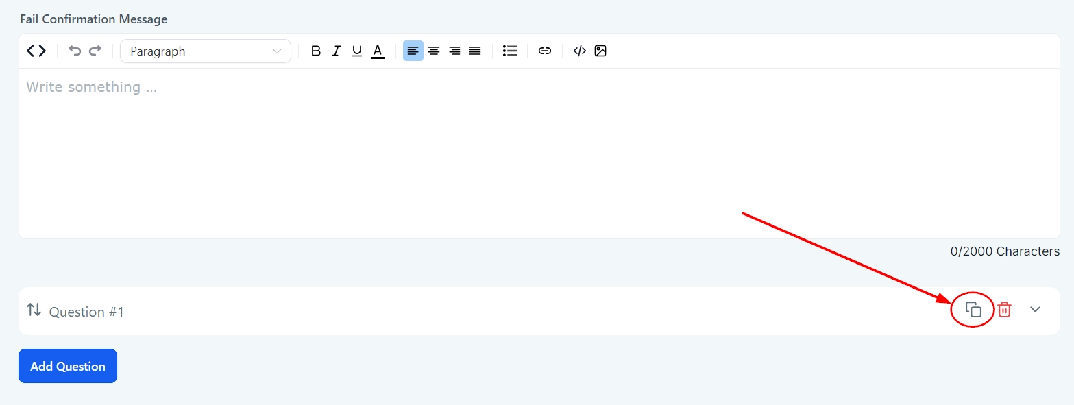 Duplicate any question by clicking the clone option. This is useful for similar questions with slight variations.
