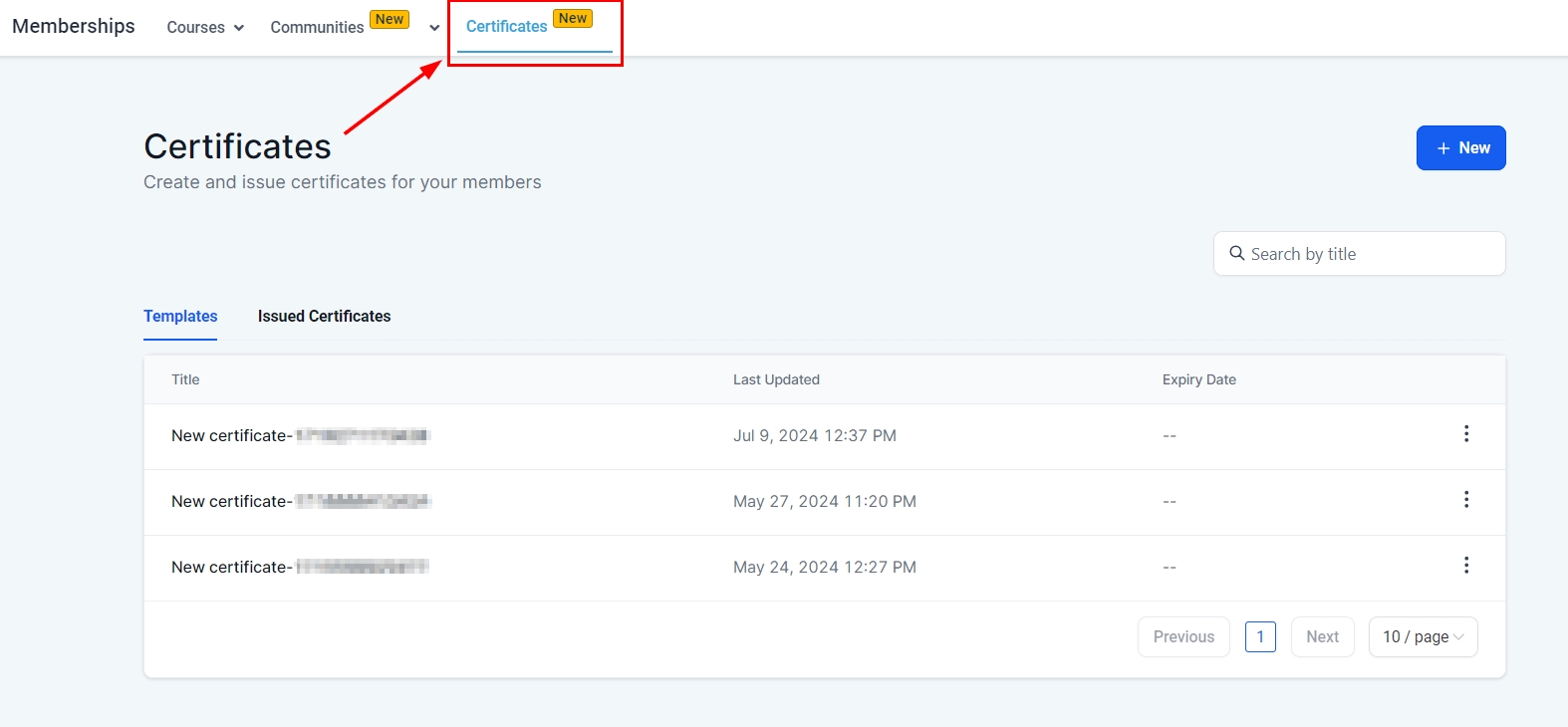 Start by navigating to the Certificate Builder module within the Memberships tab. This is where you can create and manage certificates.