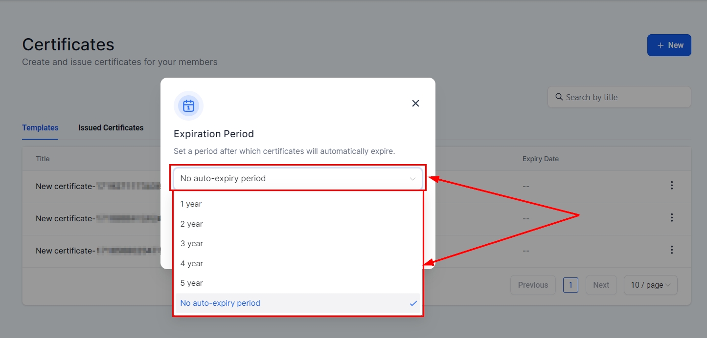Flexibility: Choose to set expiry dates at the template level for consistency or customize expiry dates for individual certificates as needed.