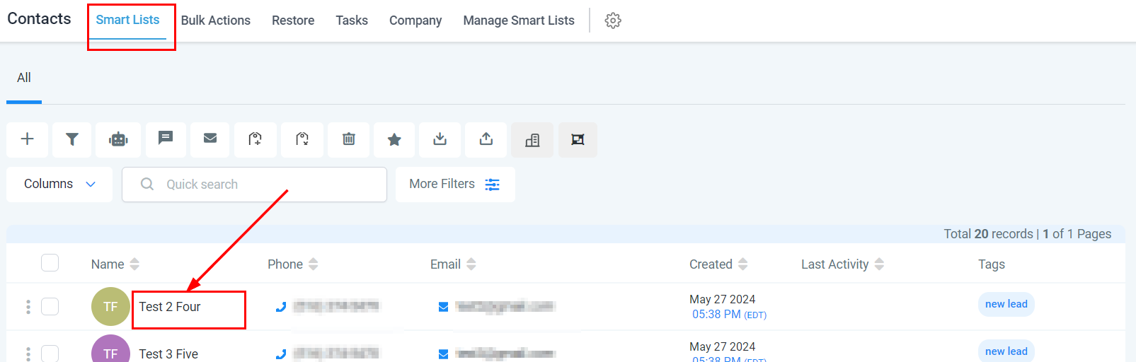Navigate to a Contact: Select any contact from your list to view their details.