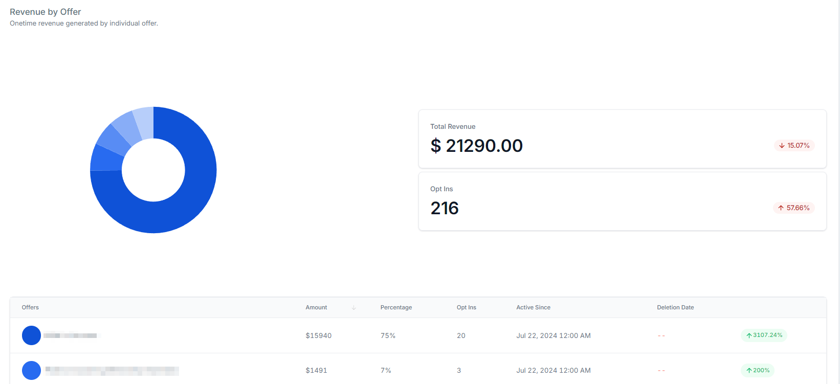 Revenue by Offer which separates the data for its specific offer.