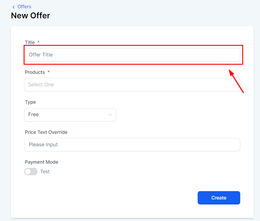 Add the price for the offer then click Create to save the offer.