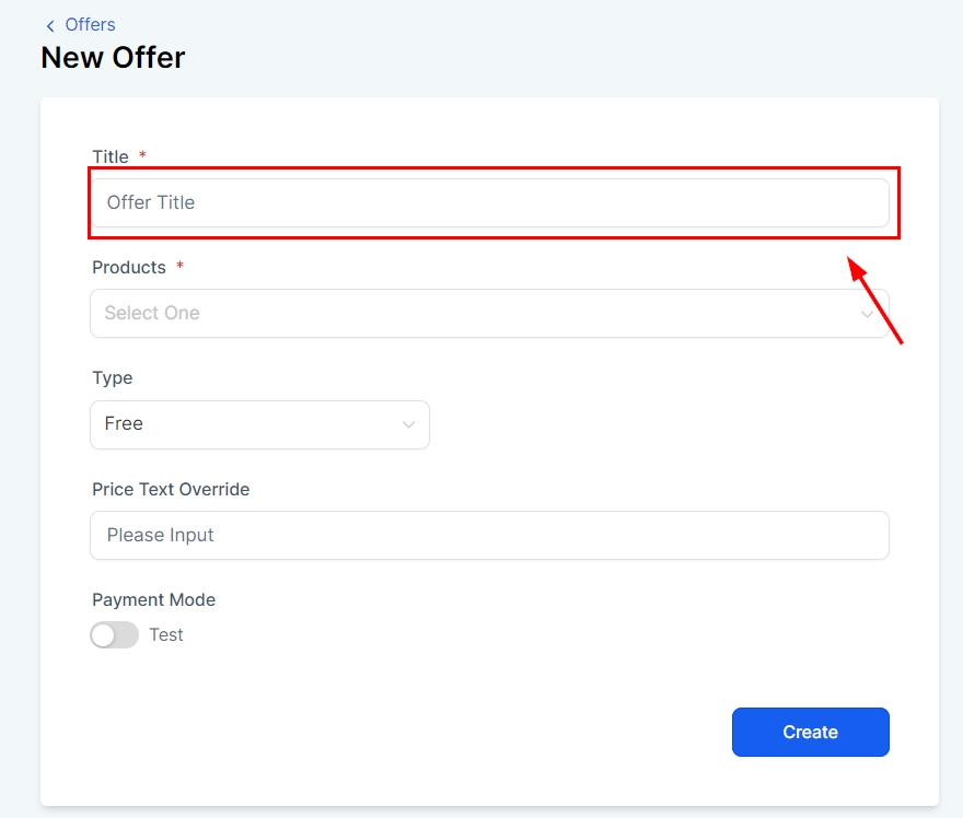 Click + Create Offer this will direct you to a page to add the details of your product.