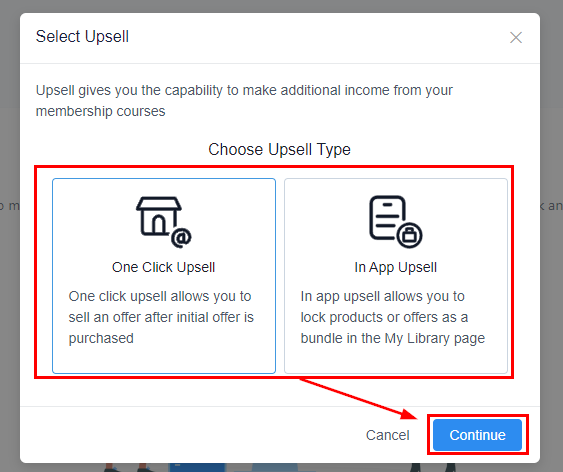 Select the Upsell type then click Continue.