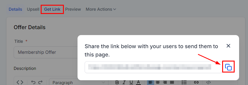 This will copy the Link to access the membership offer to your click board.