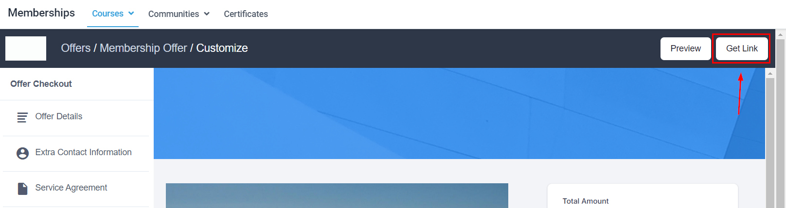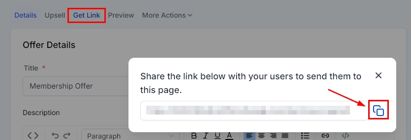 To copy/share the URL link of a course product, simply click on the "Get Link" icon and then click the "Copy" button.
