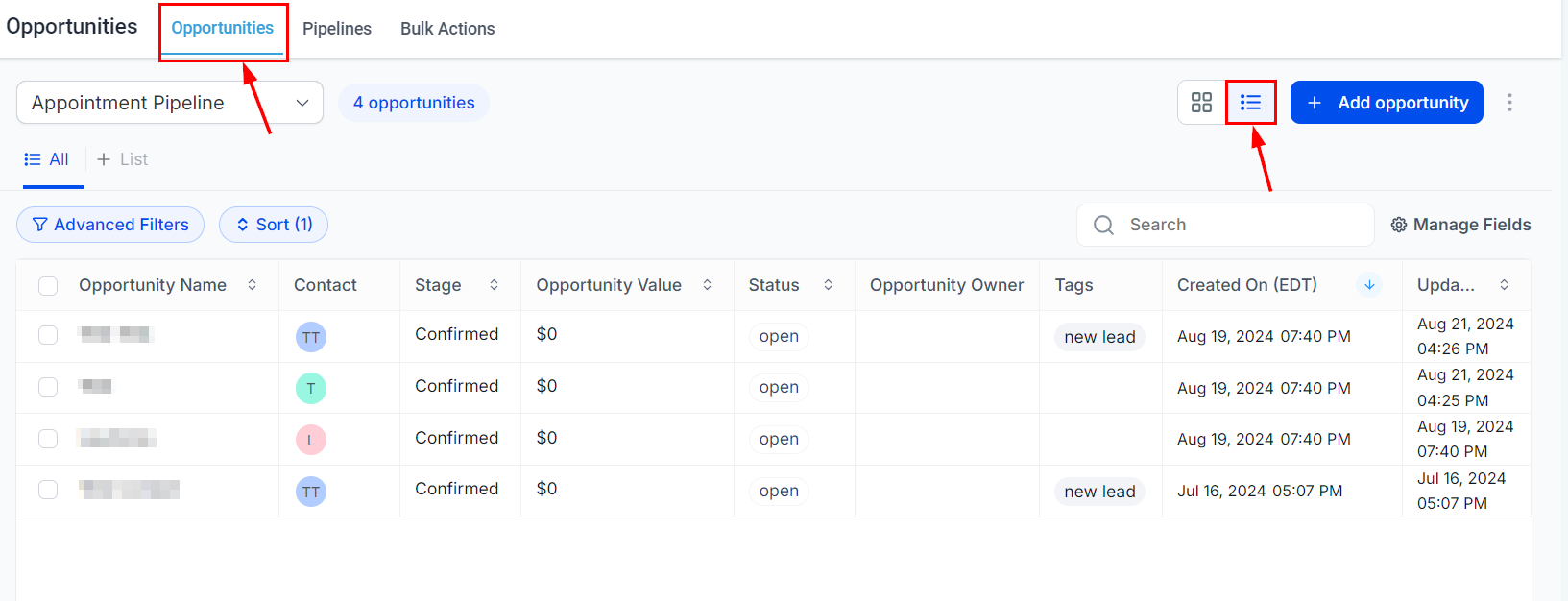 Access List View: Navigate to Opportunities > List View.