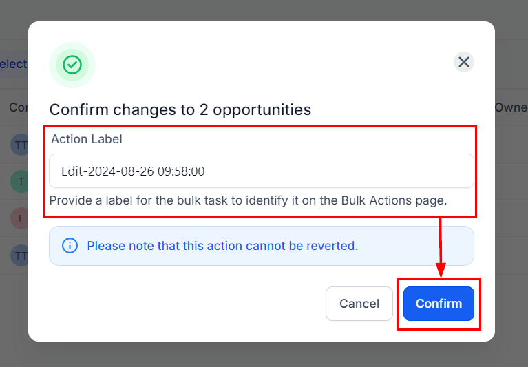 4. Apply Updates: Assign a name to the Bulk Action for easy identification, then click Confirm to apply your changes.