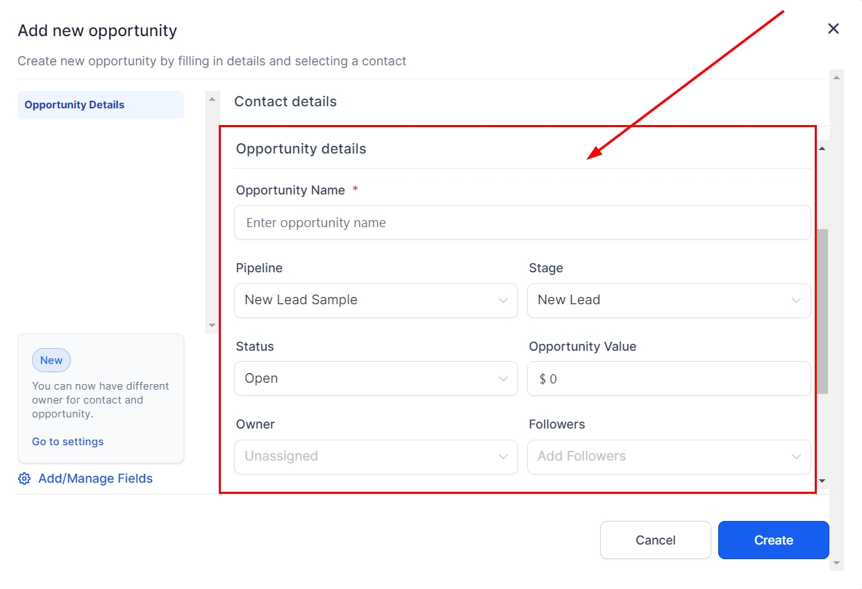 Pipeline: Here you will select which pipeline you are allocating this new opportunity into. This is very important for organizational purposes and tracking data correctly throughout the pipeline.