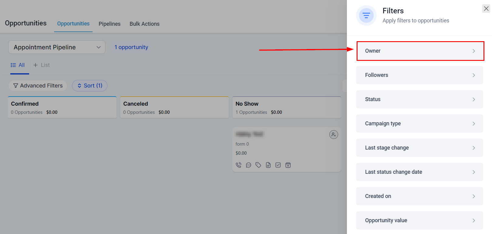 Filtering by Owner: If you want to view opportunities assigned to a specific salesperson, you can filter by owner. This helps in assessing individual performance and workload.