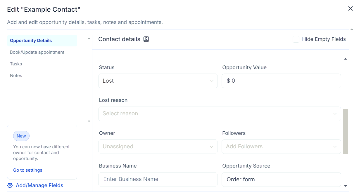 A lost opportunity refers to a potential deal or sale that fails to close successfully. It occurs when a prospective customer or lead decides not to move forward with the purchase, typically after engaging with the sales process. In this article, we will explore a feature designed to enhance your understanding of why opportunities are lost, offering deeper insights into your lead management process. This feature enables you to track and analyze the reasons behind missed conversions, allowing for more informed decision-making and strategies to minimize future losses.