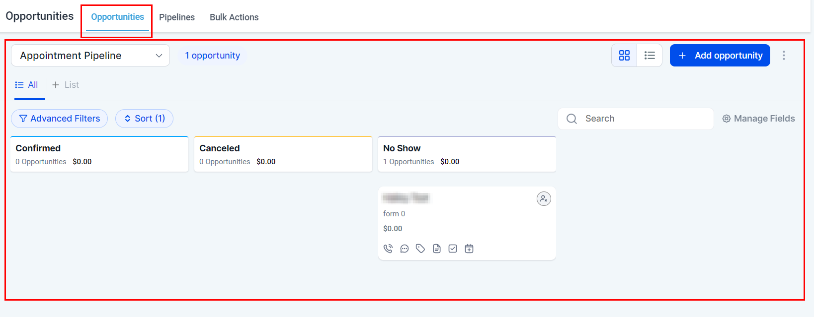 Welcome to the Opportunities tab overview. This section is designed to help you efficiently manage and organize new business opportunities by incorporating them into pipelines, allowing you to monitor their progress throughout the entire sales cycle. Once the pipelines are in place, you can start leveraging this powerful feature to streamline your sales process.