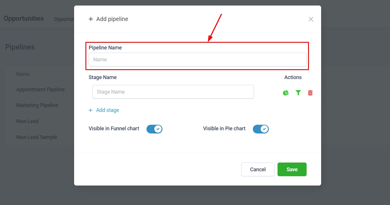 Assign a name to your pipeline based on its purpose or lead source, such as "Google Ads," "Facebook Ads," or "Website Leads."