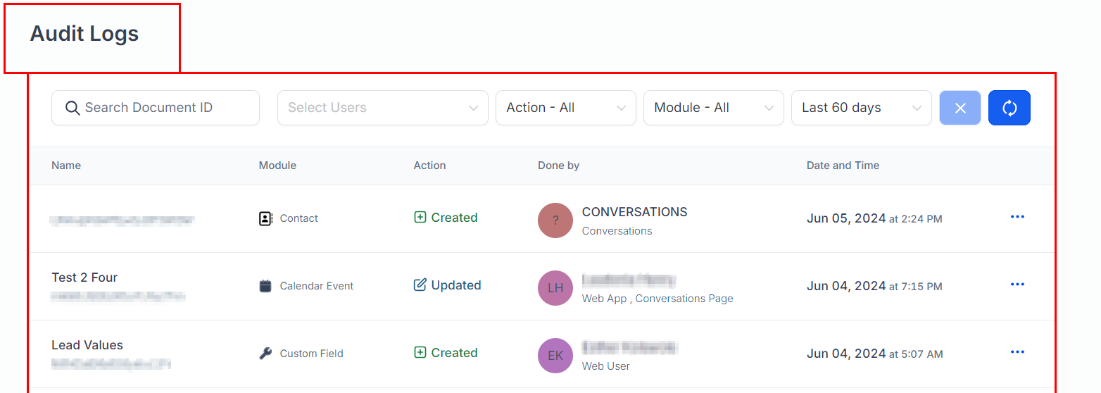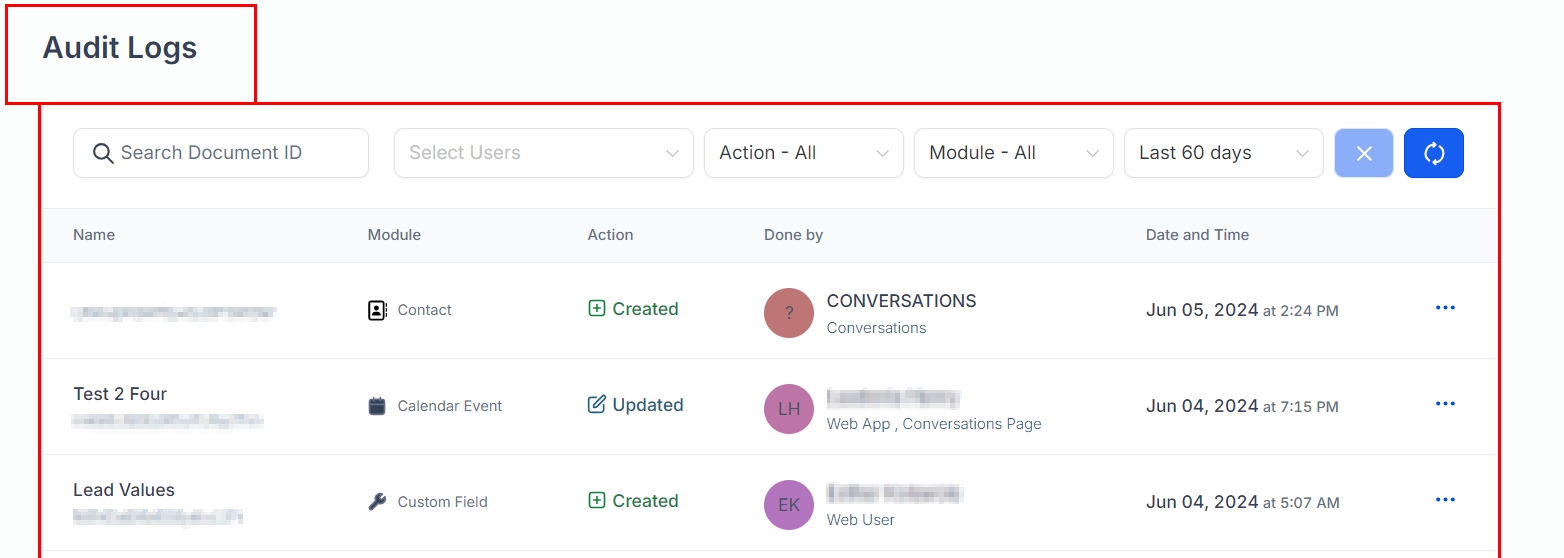 Audit Logs are a vital component of the CRM that provides a detailed record of all activities and changes made within various modules such as contacts, calendars, opportunities, and communication. These logs are instrumental in tracking the source of changes, ensuring data integrity, and facilitating troubleshooting.