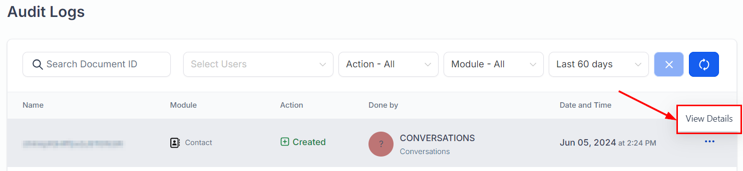 For a deeper insight into the activities recorded in the Audit Logs, you can view detailed information about each entry.