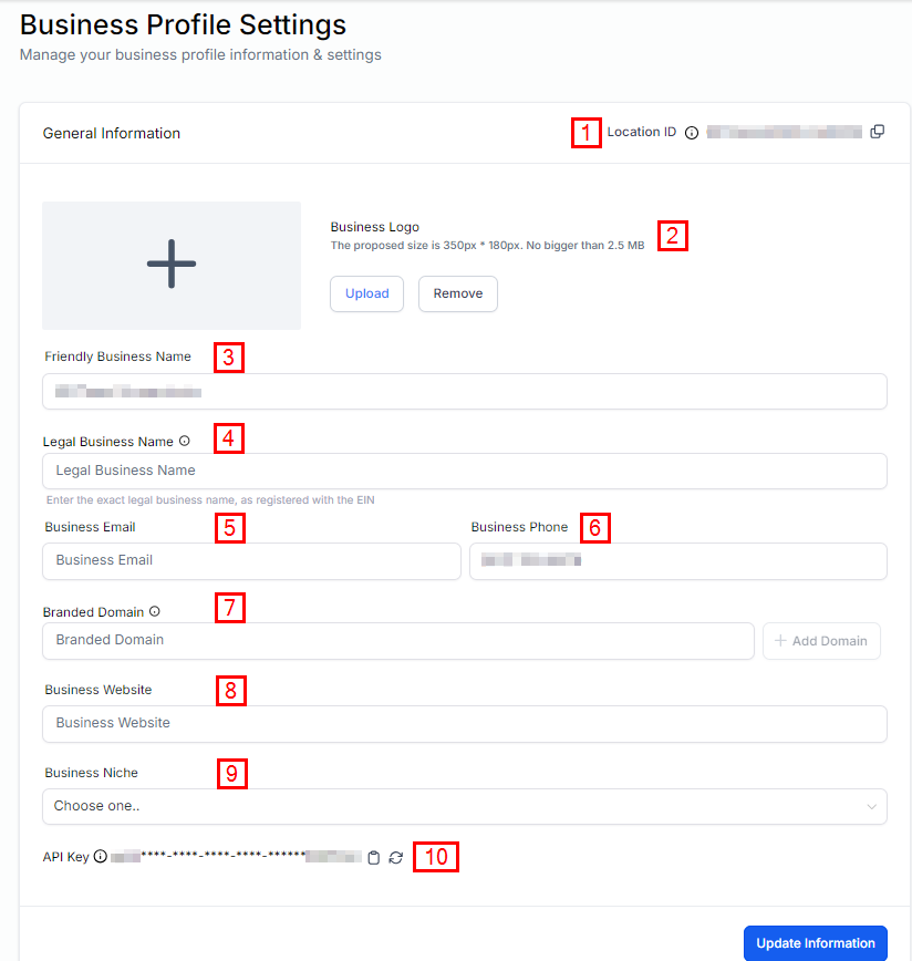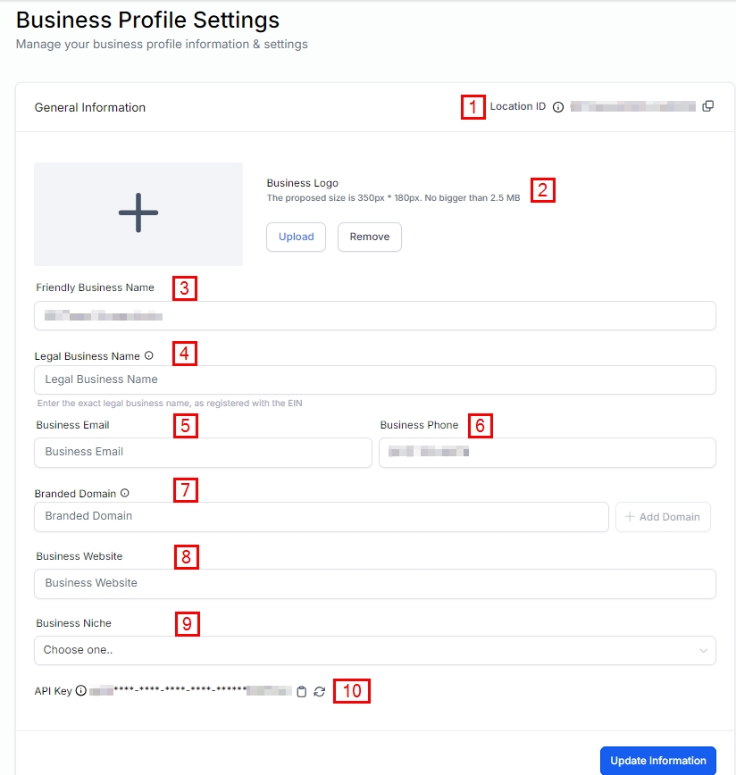 After completing your updates to the Business Information, be sure to save your changes by clicking the Update Information button!