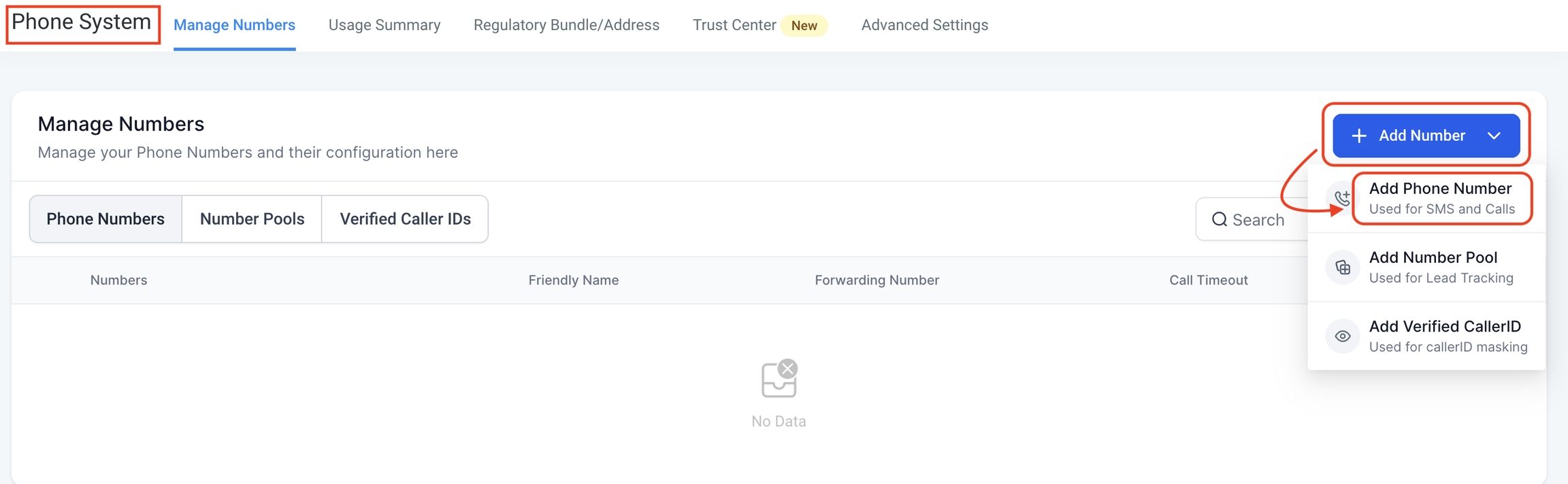If you haven't already, add your account's phone number by going to your Settings and then opening the Phone System tab. This number will be used for the missed call text back feature, if you need additional help setting it up please check our article “Settings: Phone Numbers”