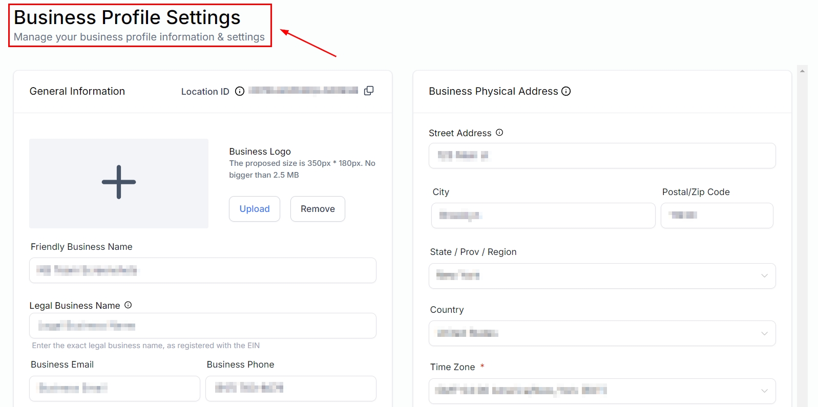 Access Business Profile Settings