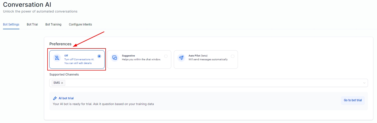 This feature completely switches off the Conversation AI. While you can still modify settings and particulars, the AI will cease to engage with your customers.