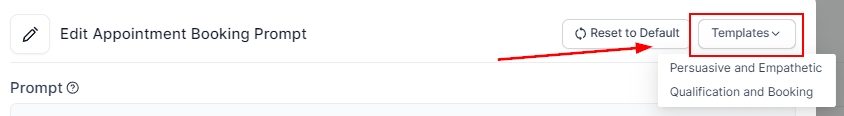 The system also offers templates with predetermined prompts designed to make customization easier. To select the one you want to use open the Templates drop-down menu. The three predetermined options available are: