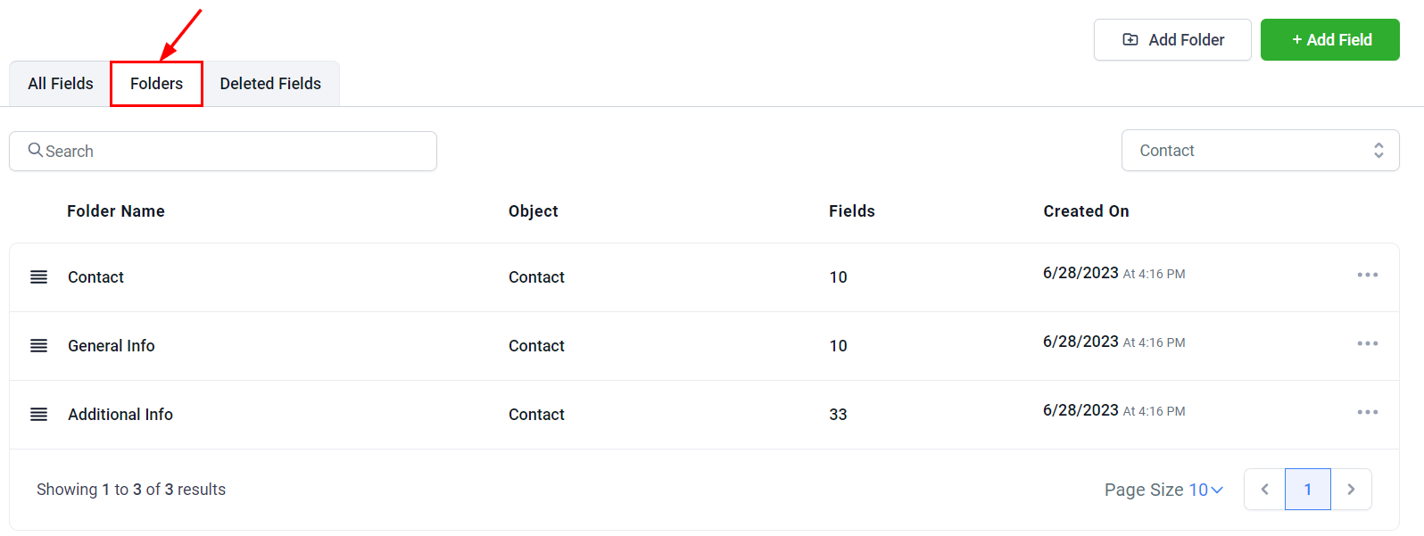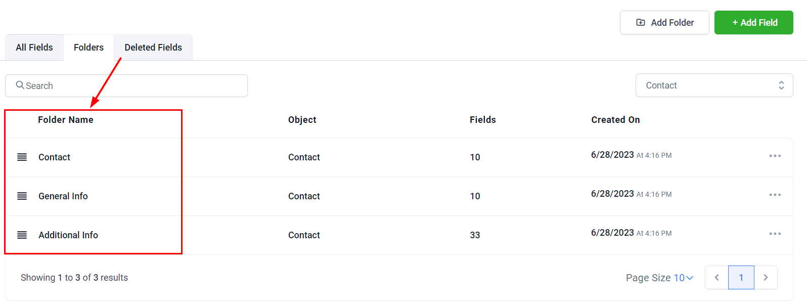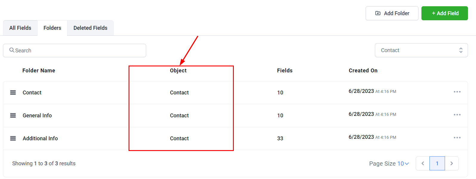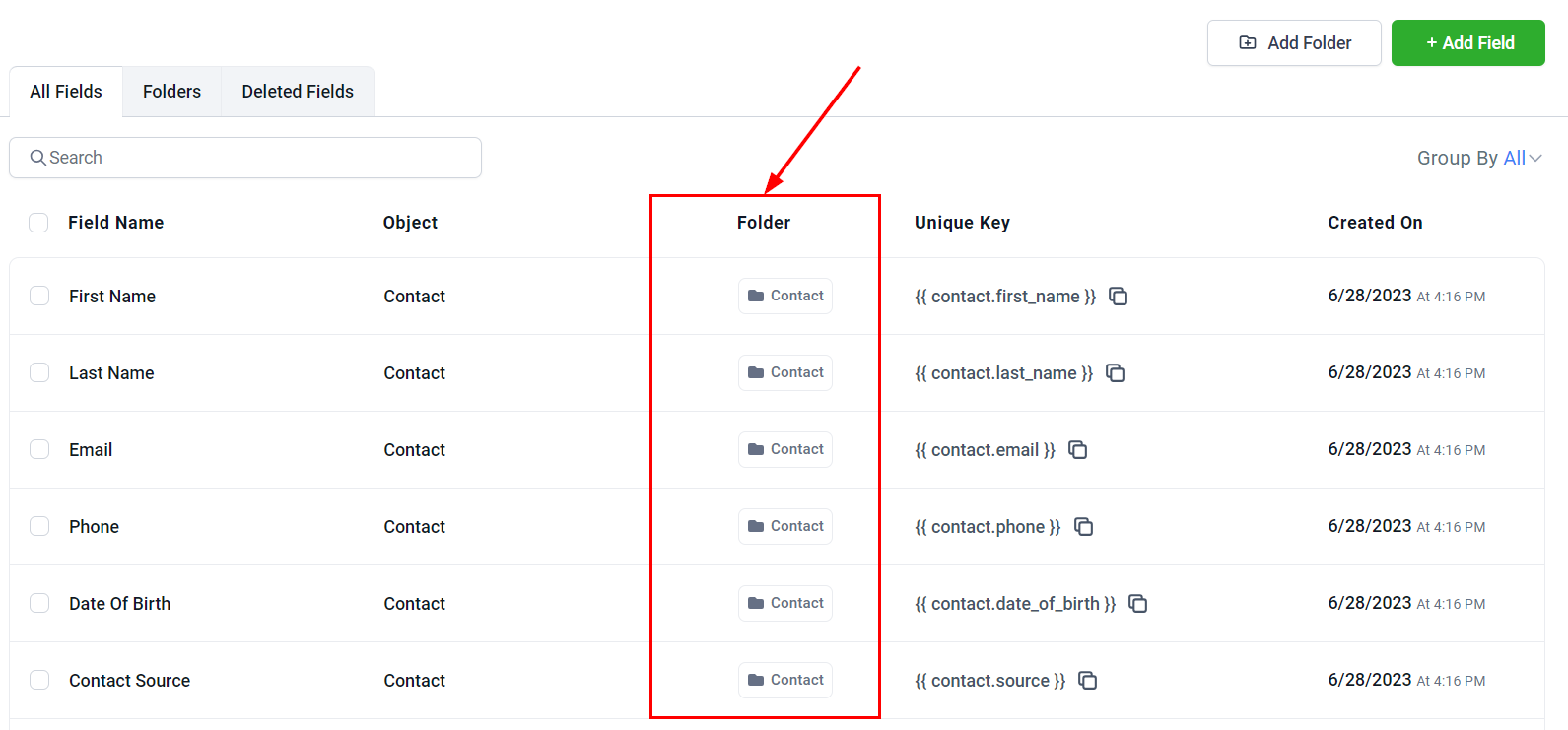 In this section, you'll find the folders associated with each of your custom fields. This feature allows you to easily identify which folder is linked to a specific custom field.