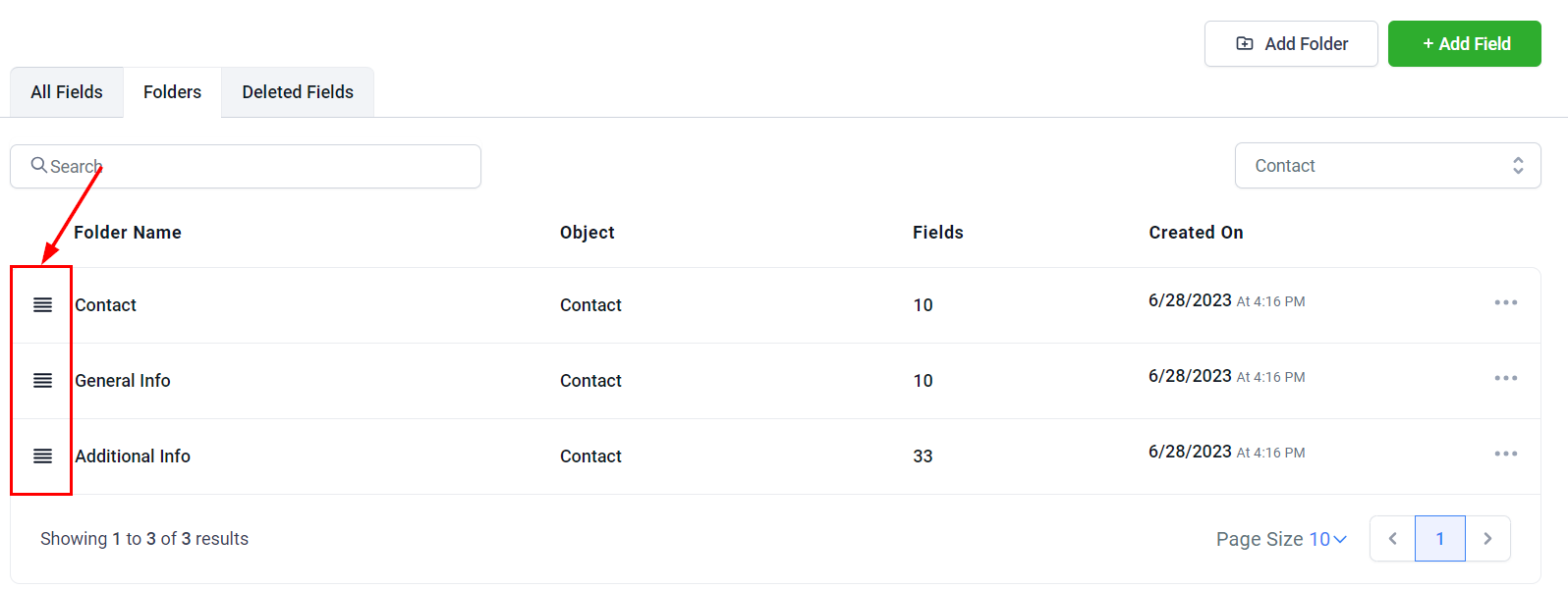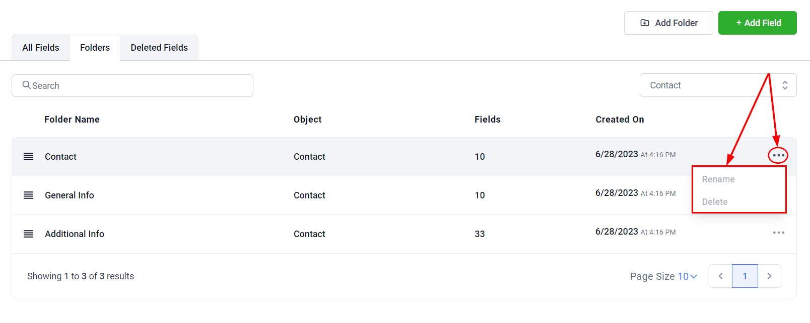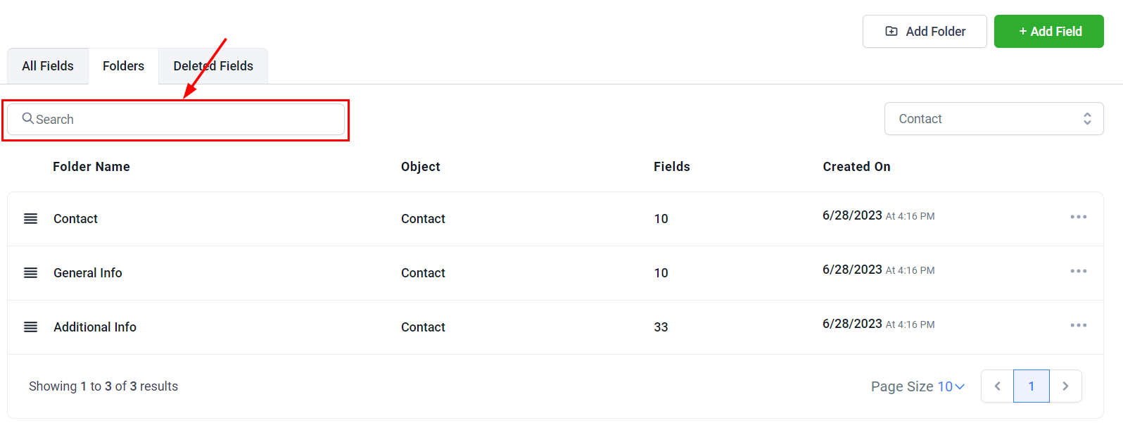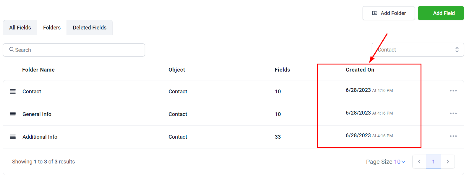 In this section, you'll find the folders associated with each of your custom fields. This feature allows you to easily identify which folder is linked to a specific custom field.
