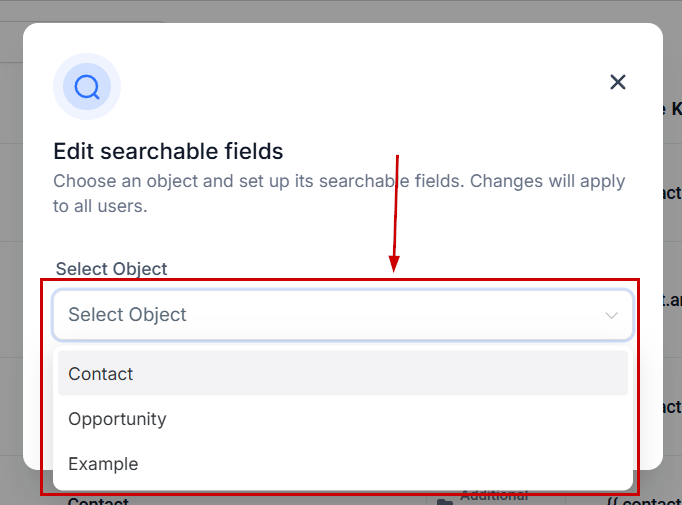 Select the Object you want to edit, this can be applied to contacts, opportunities, and custom objects.