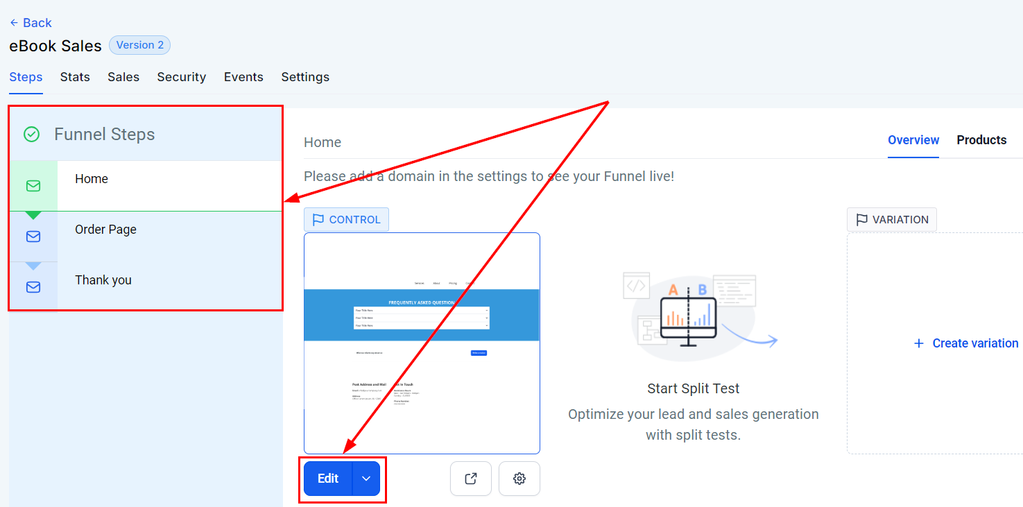 Click on the funnel page that you want to edit and choose to edit it in the same tab or a new tab.