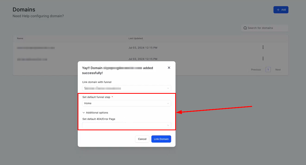 6. Link Domain: Finalize the process by clicking “Link Domain”.