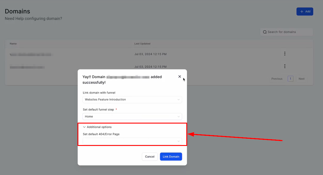 Start by accessing your CRM dashboard and navigating to the domain settings. This section allows you to connect your domain and configure various features, including your custom 404 error page.