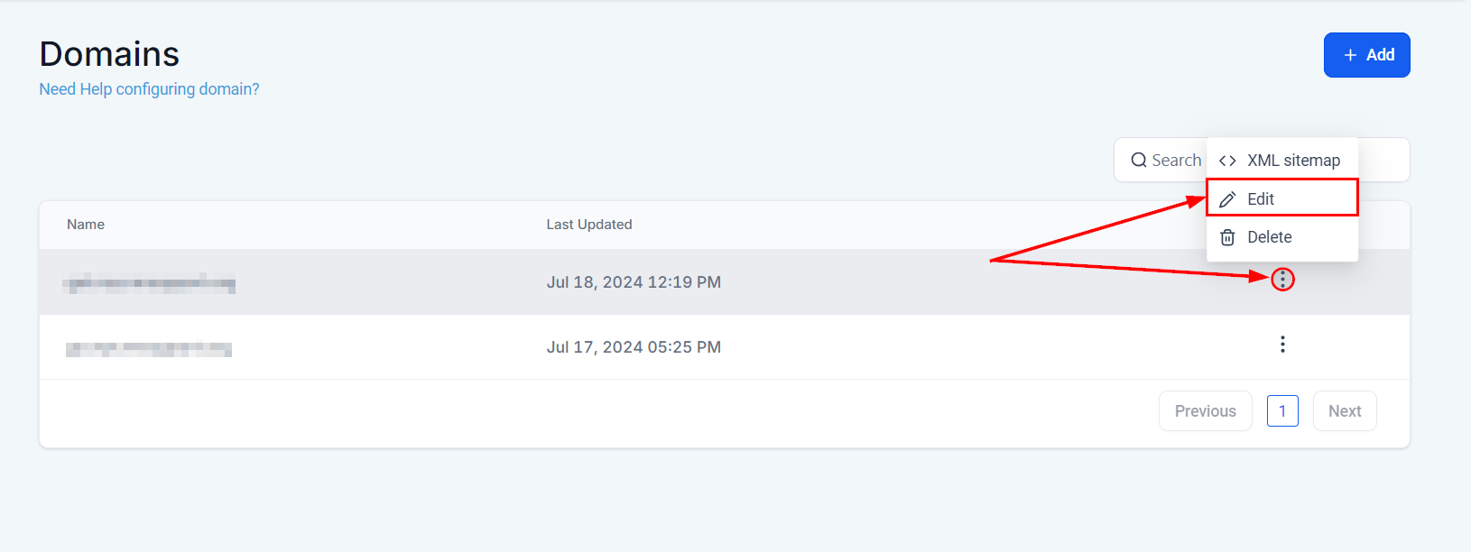 If your domain is already connected, go to the 'edit domain' section. Here, you can modify your domain settings, including the setup for your 404 error page.