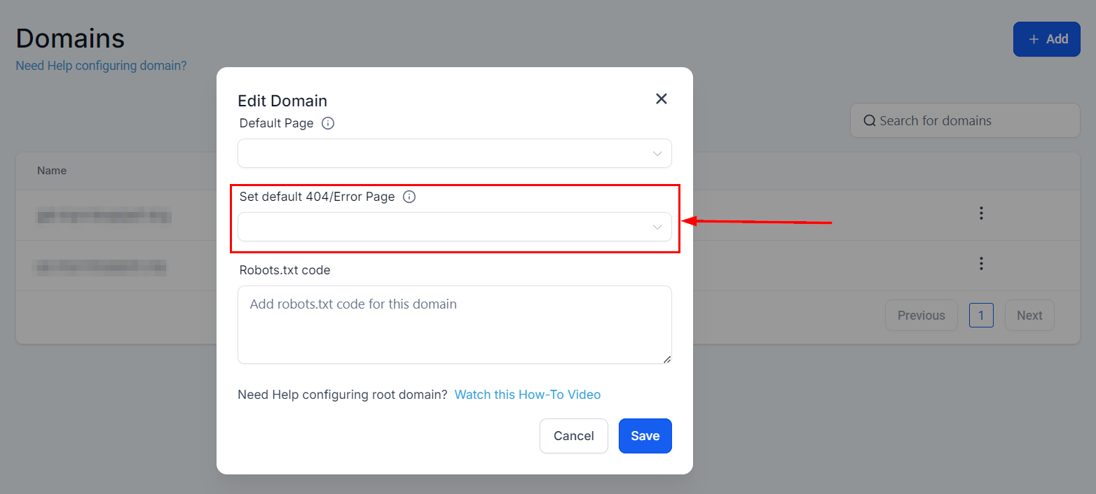Select the page you want to designate as your 404 error page. It’s advisable to have a unique 404 error page for each domain to maintain consistency and relevance.