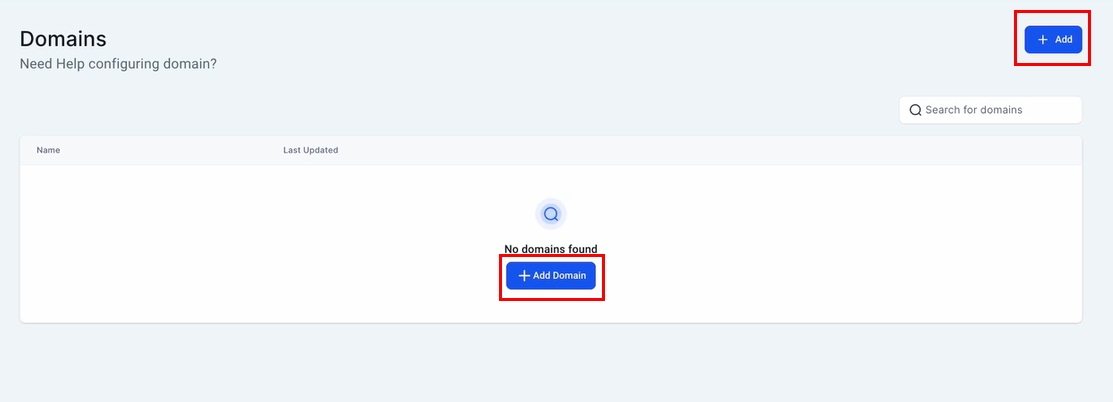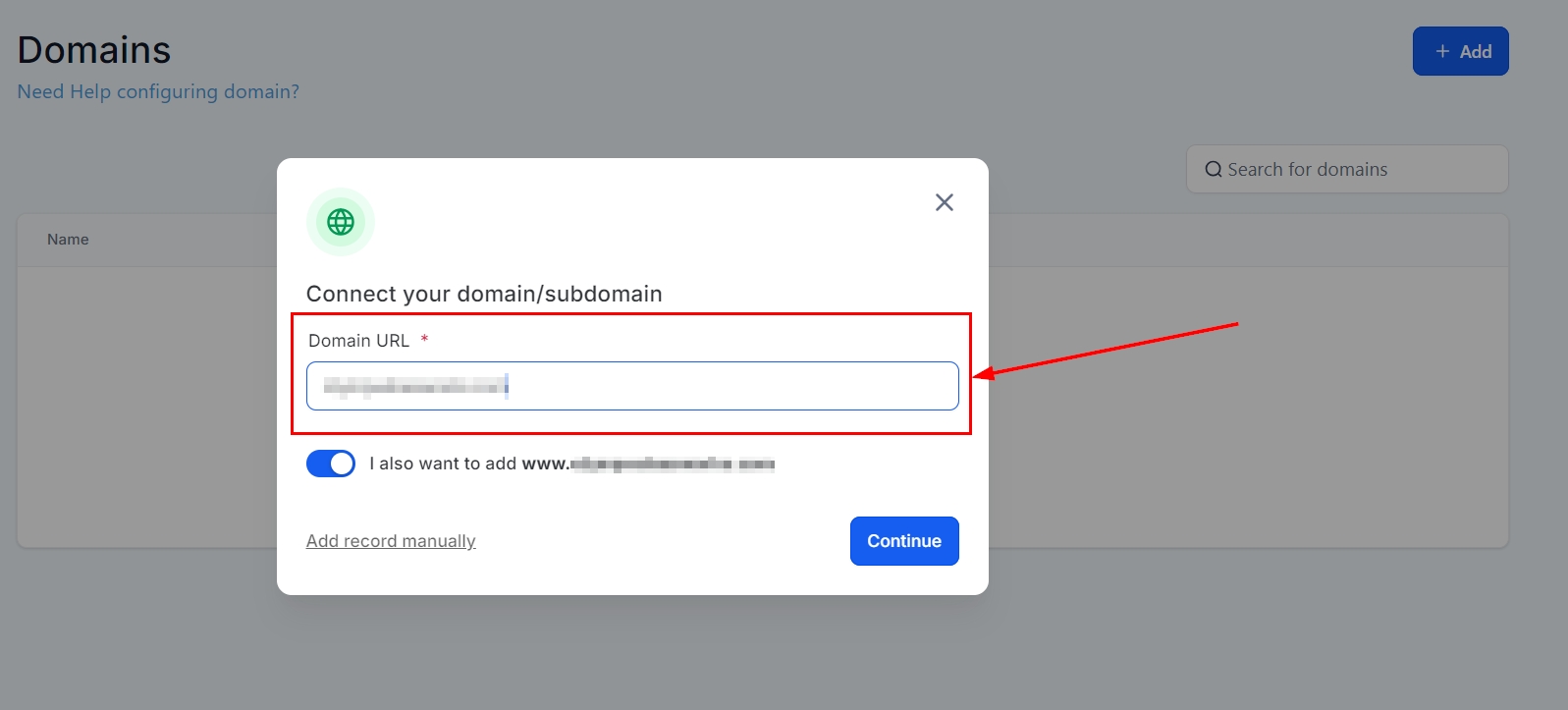 Add Domain: Click on the option to Add a New Domain within the modal.