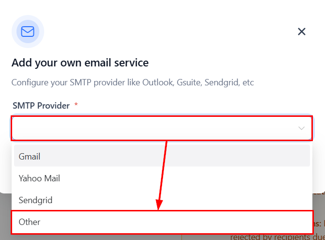 If you are using an email provider outside of the options presented in the SMTP Provider dropdown, select the Other option.