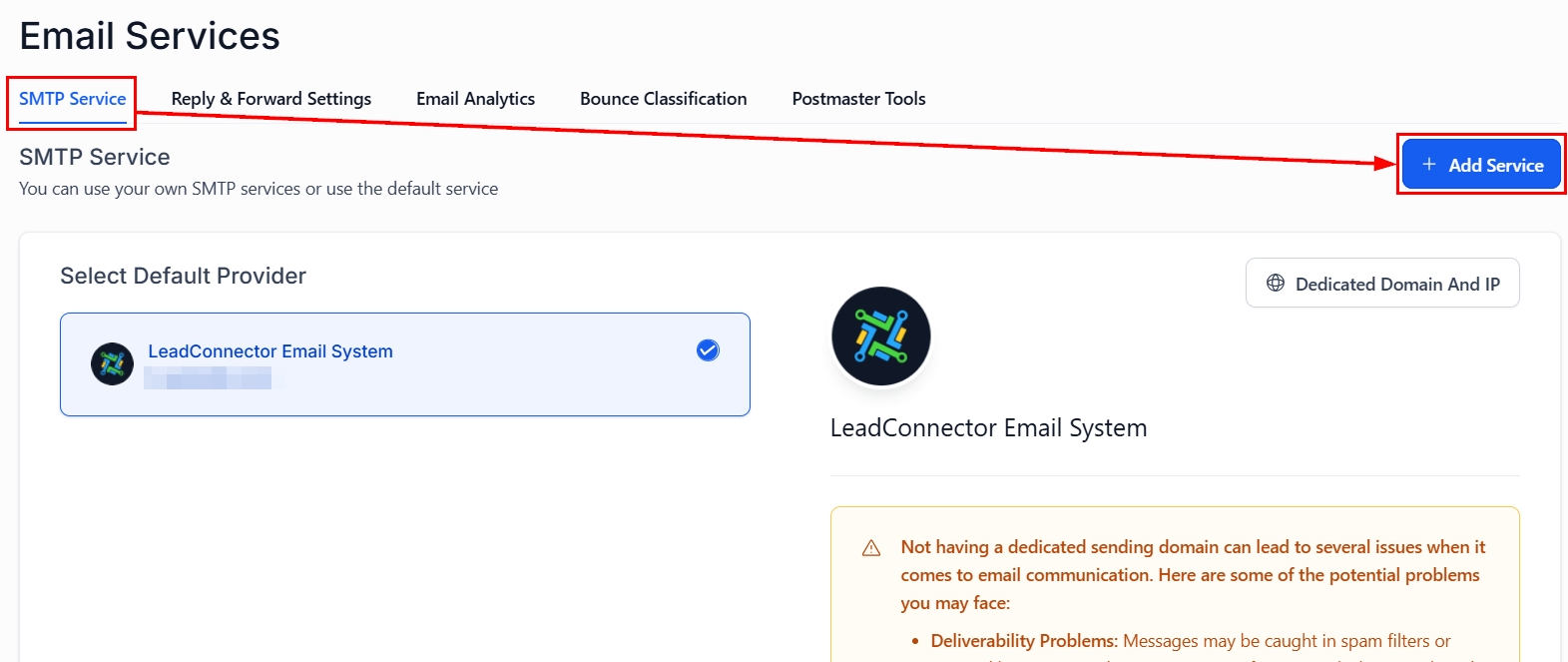 After copying the API key from your SendGrid account, navigate to the email services section within the settings of your platform. Click on the "Add Service" option to proceed with the setup.