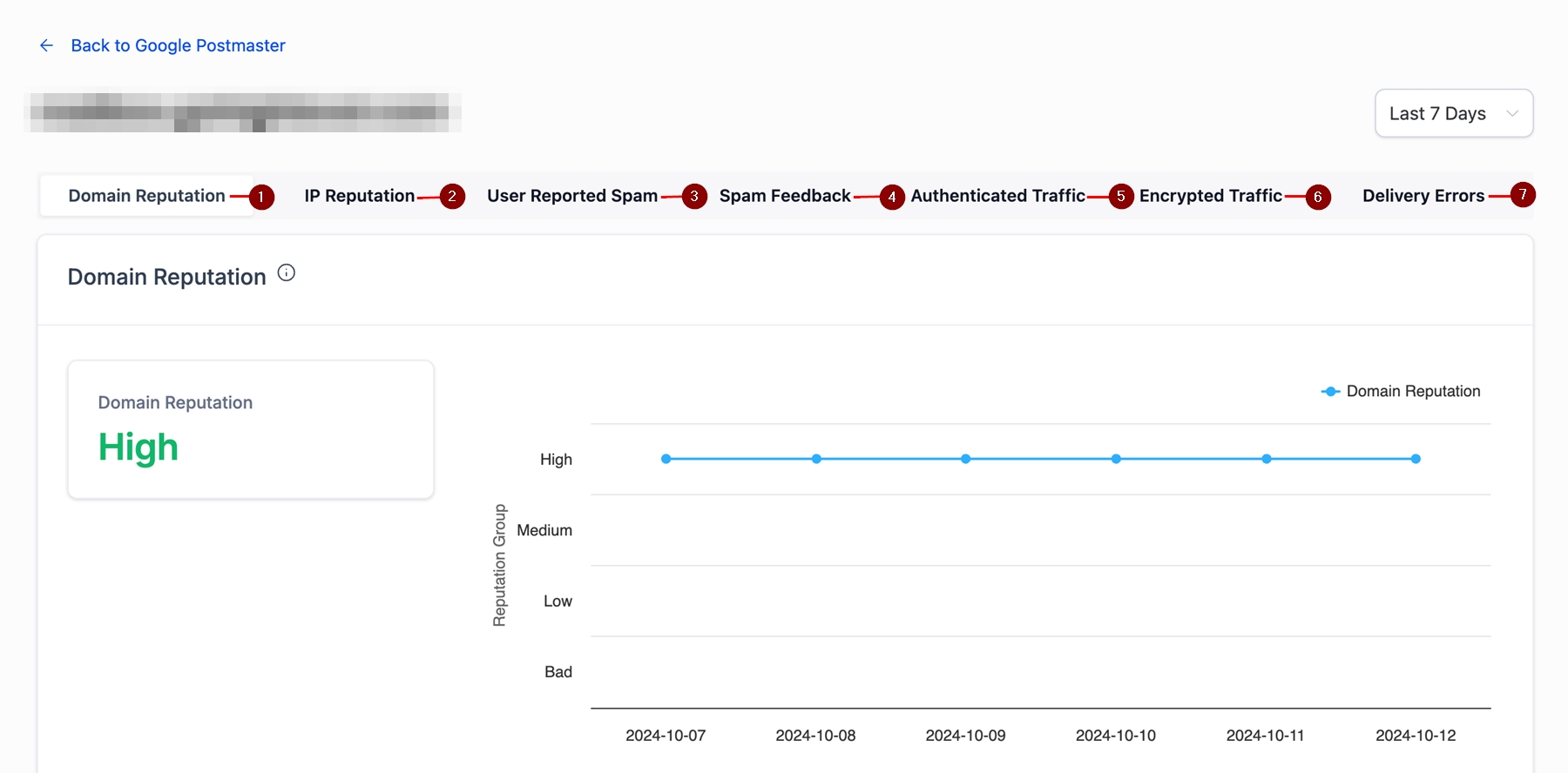 Domain Reputation Dashboard: Reflects the overall trustworthiness of your domain based on Gmail’s assessment.