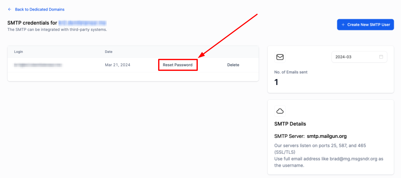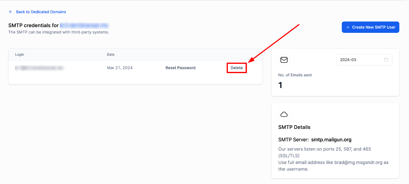 📌Note: You can create a maximum of five SMTP credentials for a dedicated domain.