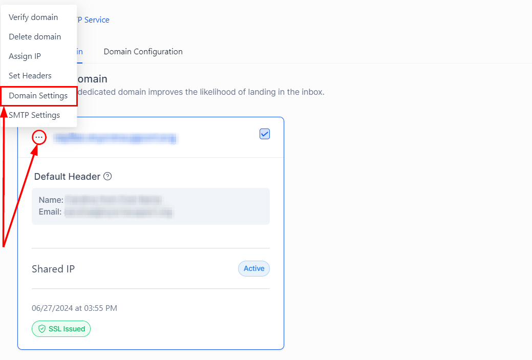 Go to Domain settings under your dedicated domain.