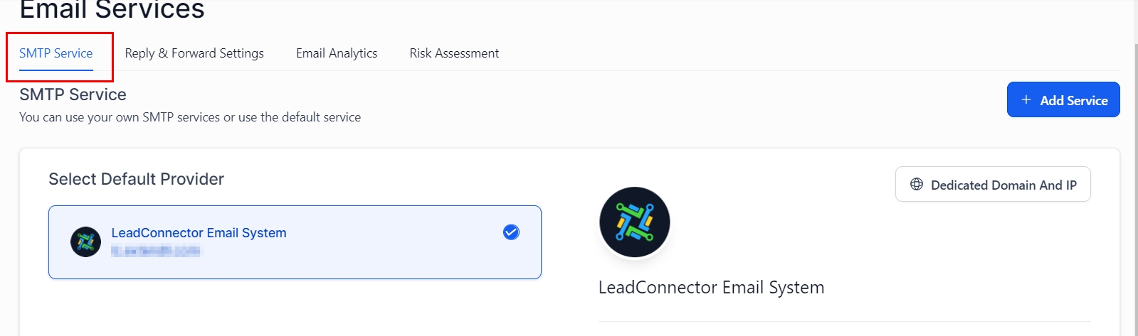 Click on 'Email Services'. This will open the SMTP Service tab.
