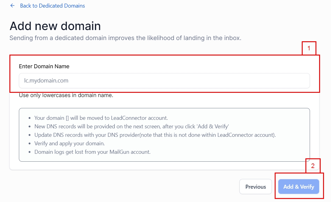 Using a dedicated domain for your email services is very important. It not only enhances the professionalism of your communications but also improves email deliverability. This section will guide you through the steps of adding and verifying a dedicated domain.