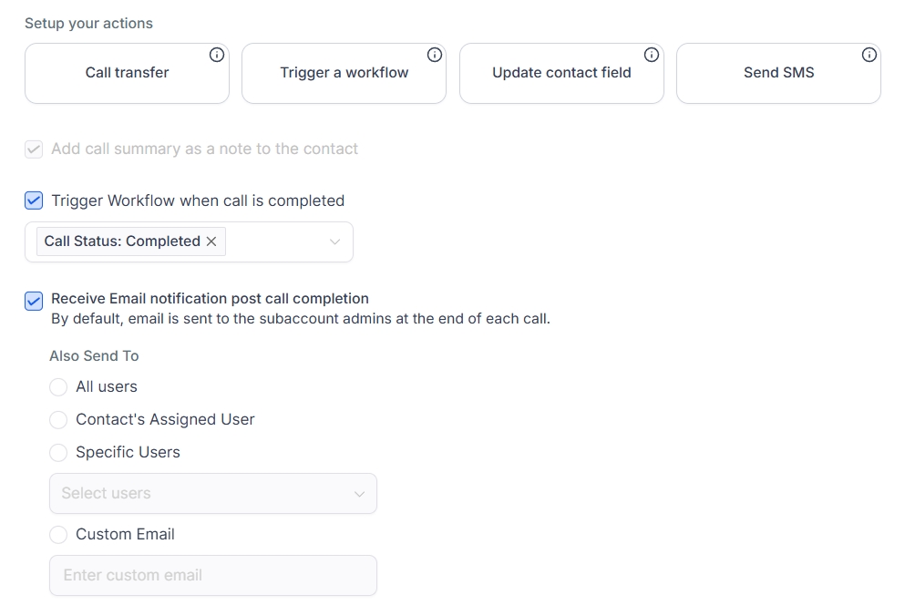 Just like with the Basic Mode setup, after you see the Setup actions you'll have the option to Trigger Workflows and Notify additional users.